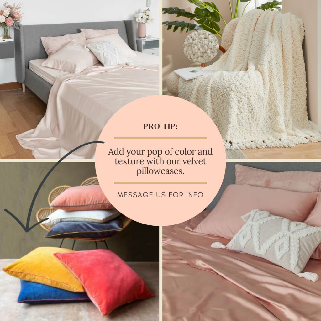 - Pops of Color: If you’re a fan of vibrant colors, use bamboo sheets as a backdrop for bold, colorful pillows and throws. The natural, calming tones of bamboo provide an excellent canvas for playful accents that express your personality. A textured pillowcase is a great way to add decorative elements to your bed. Chat with us on Facebook so we can get you sorted.