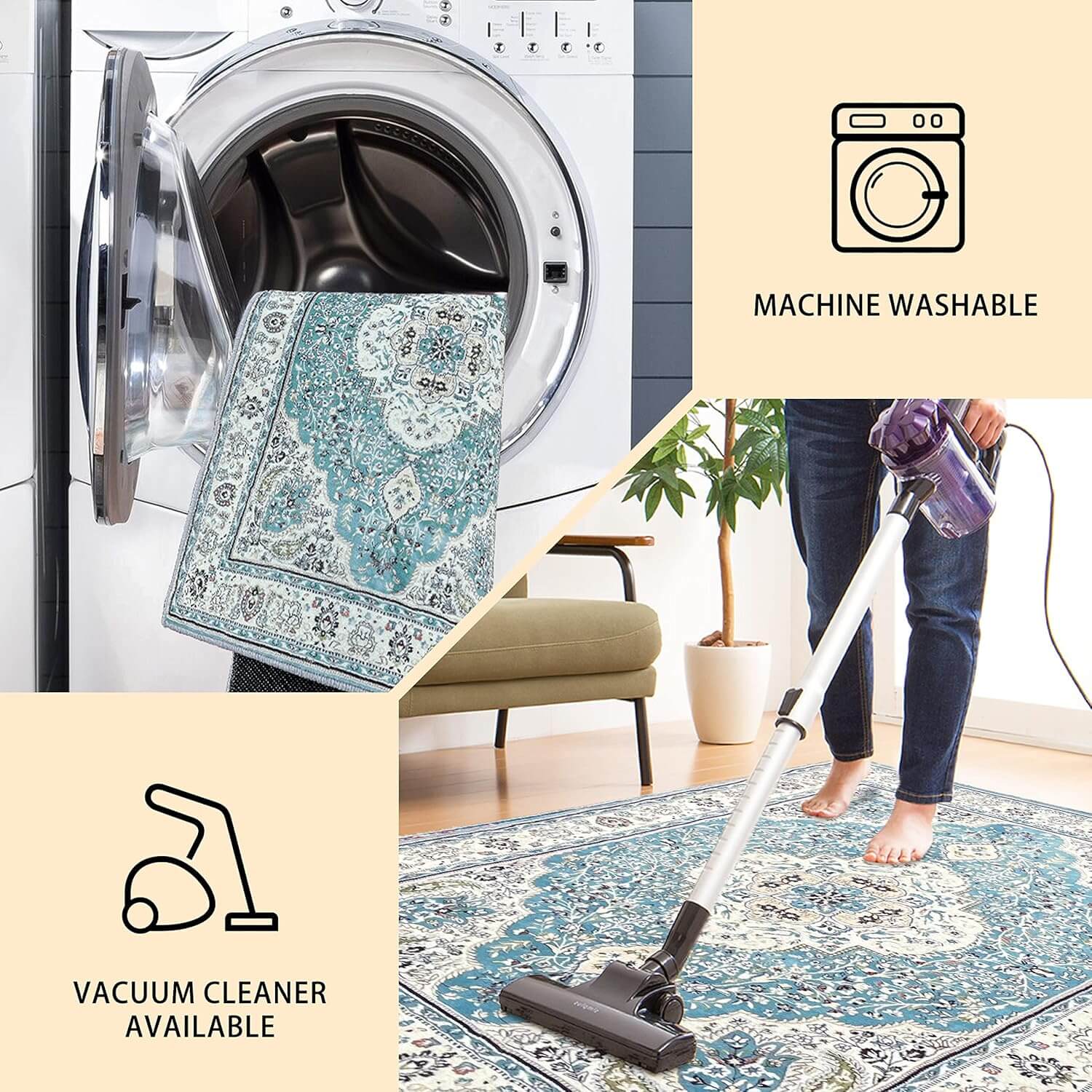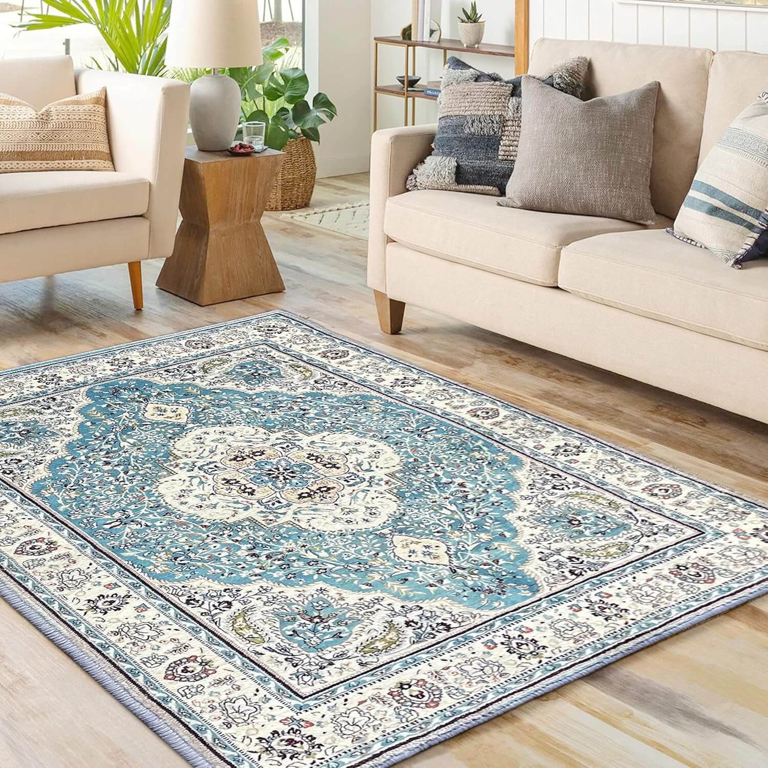Add timeless charm to your home with the Amelia Vintage-Style Rug. Its classic medallion design, distressed for a modern boho look, makes it the perfect statement piece for rustic, cabin, or lodge-inspired spaces. This handmade faux wool rug is stylish yet practical, featuring a low 1cm pile height for easy cleaning and a slip-resistant backing that keeps kids and pets safe during playtime. Refresh your home effortlessly with this cozy and durable rug!