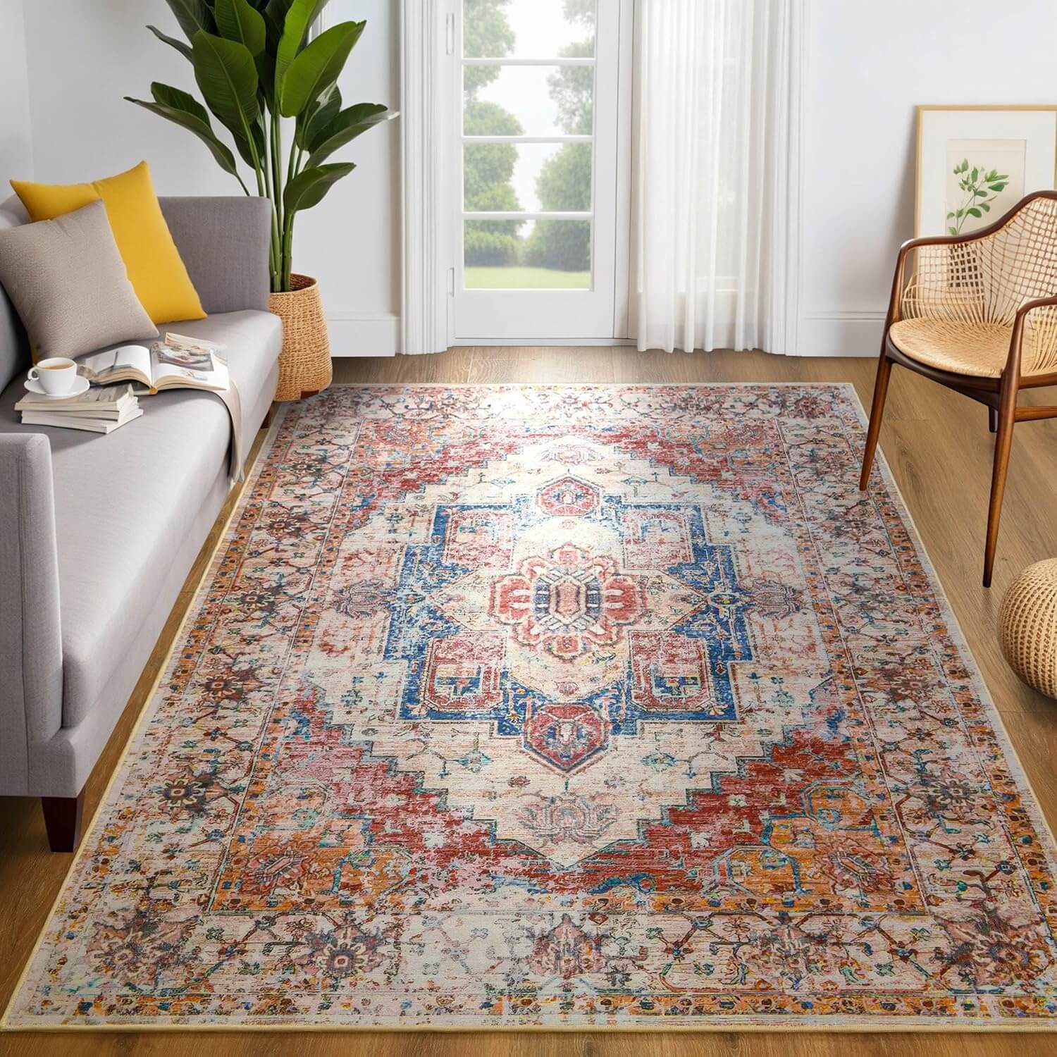 Add warmth and elegance to your home with the Anika Rug. Its exquisite floral medallion design and vintage-inspired color palette bring a touch of luxury to any space. Crafted from premium polyester with a soft, non-shedding surface, it’s both stylish and practical. The low-pile design fits easily under doors, while the non-slip backing keeps it securely in place—perfect for homes with kids and pets. Ideal for bedrooms, living rooms, entryways, and more!
