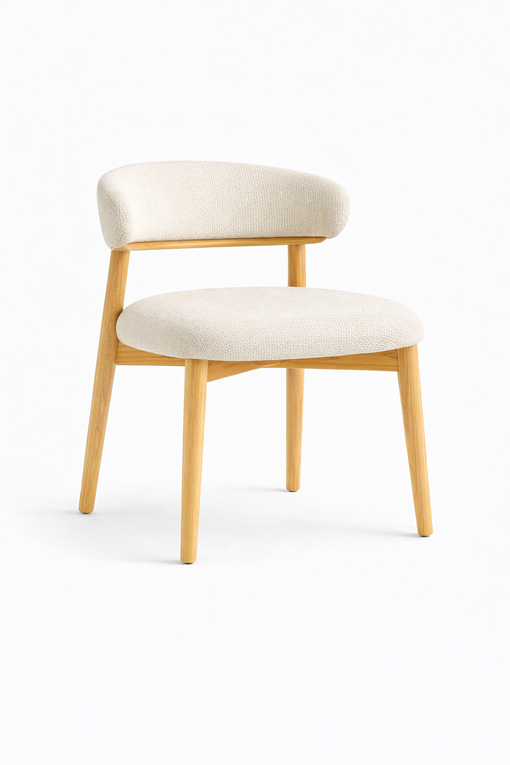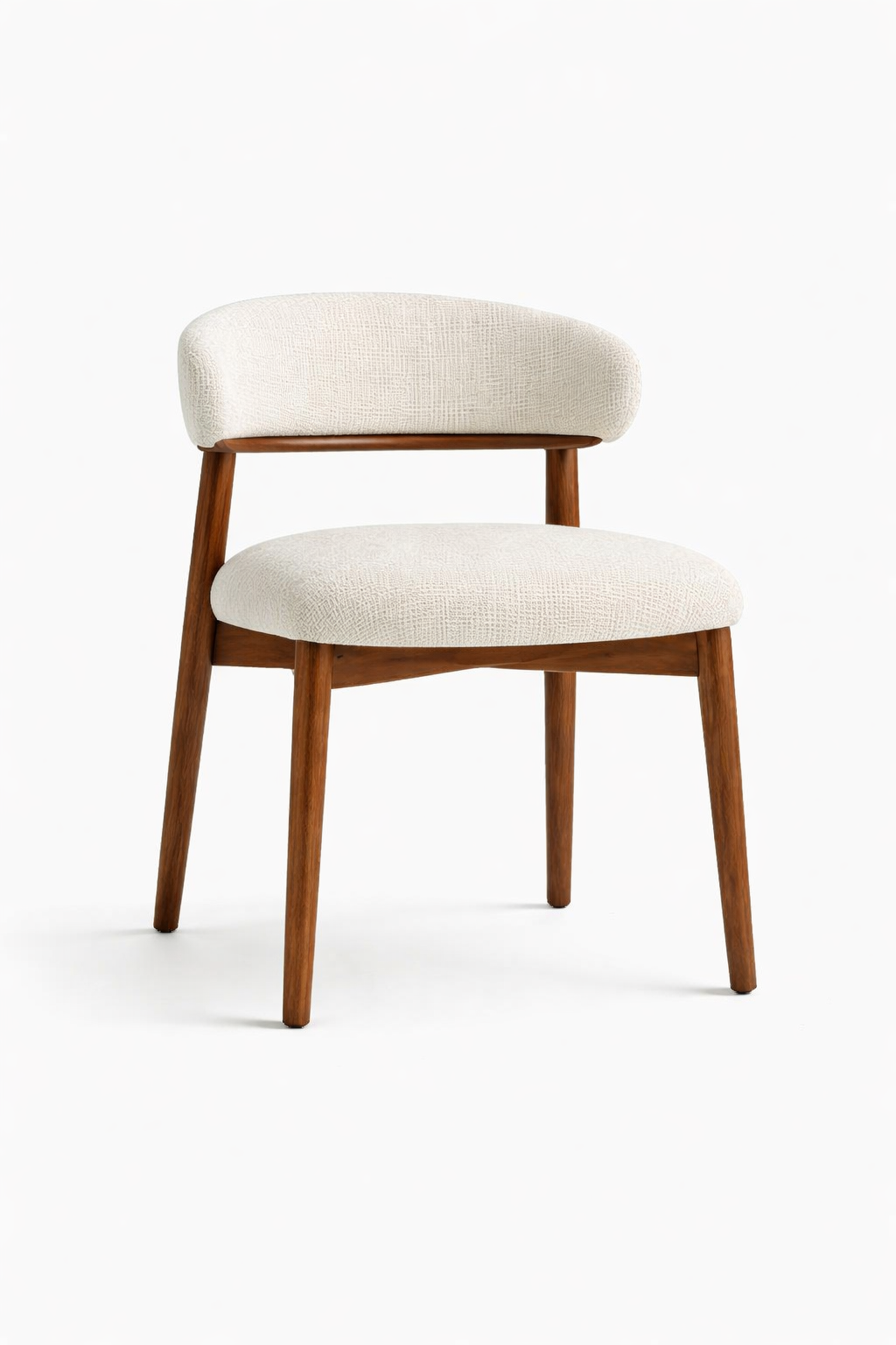 This upholstered dining chair features a walnut-toned oak frame paired with a felt fabric seat and backrest for a refined, comfortable seating experience. Its compact proportions and gently curved backrest provide support without visual heaviness, making it well suited to modern dining spaces. Designed for everyday residential use, the chair balances durability with understated elegance. Dimensions: W48 × D55 × H78 cm, seat height 45 cm.