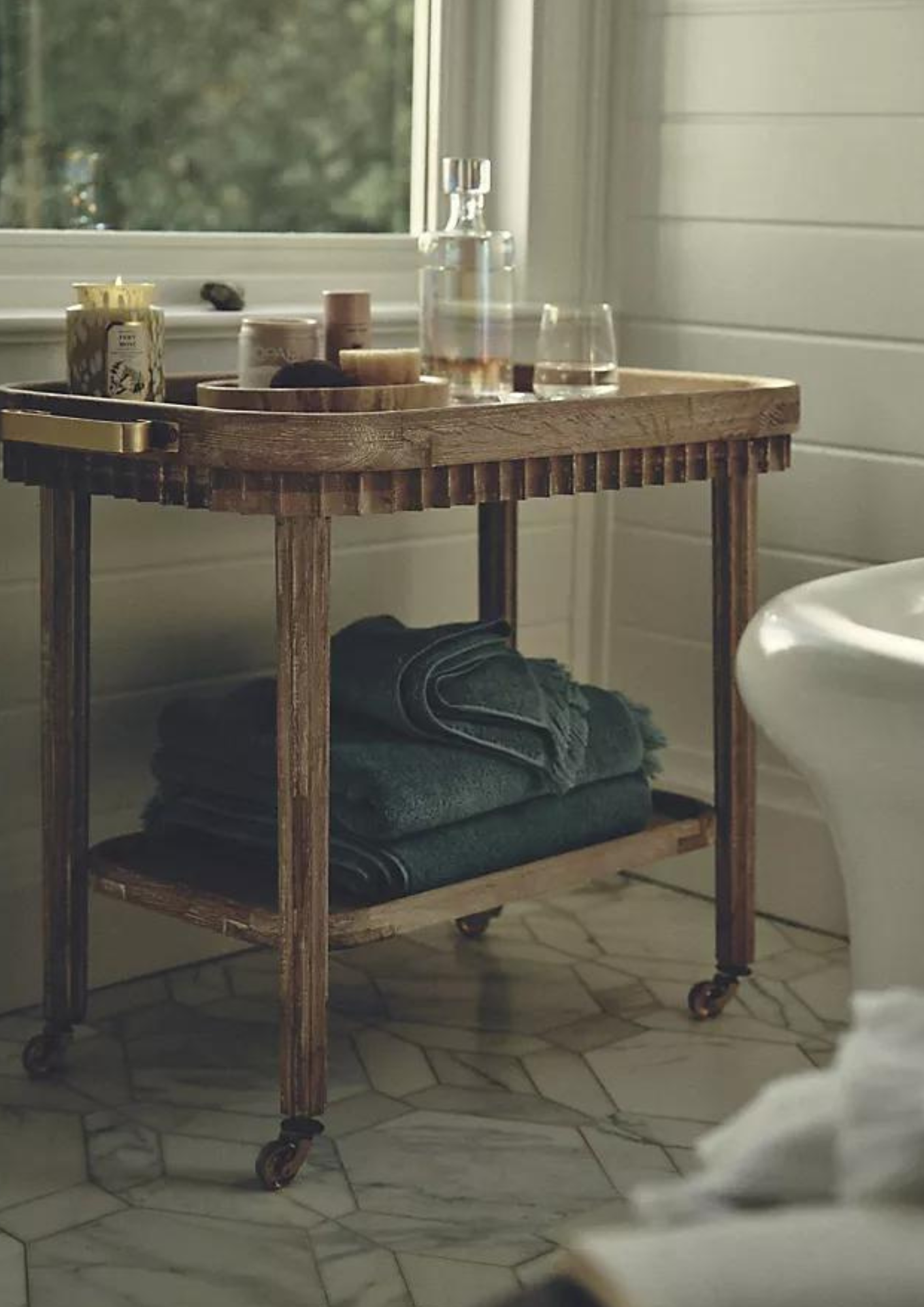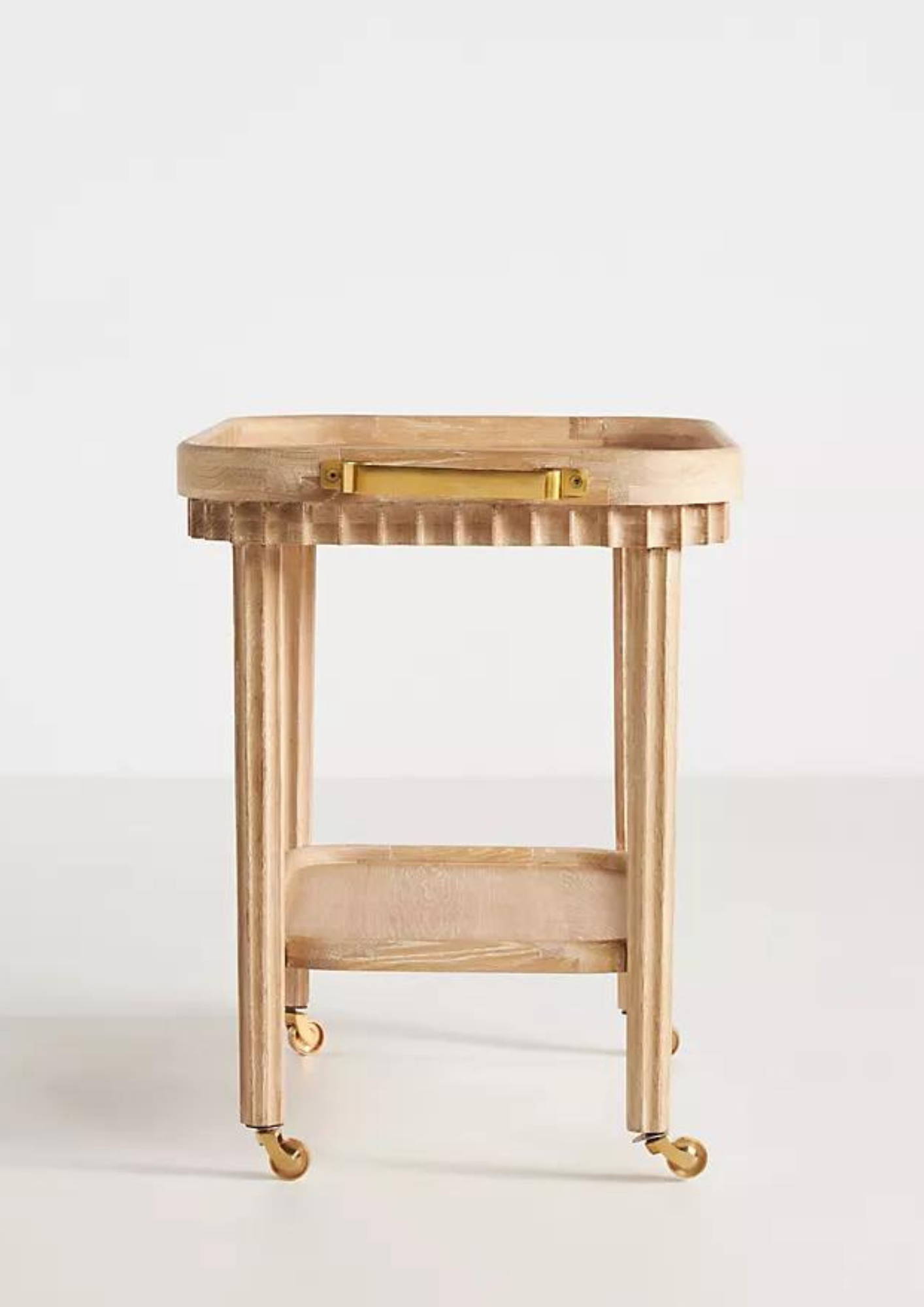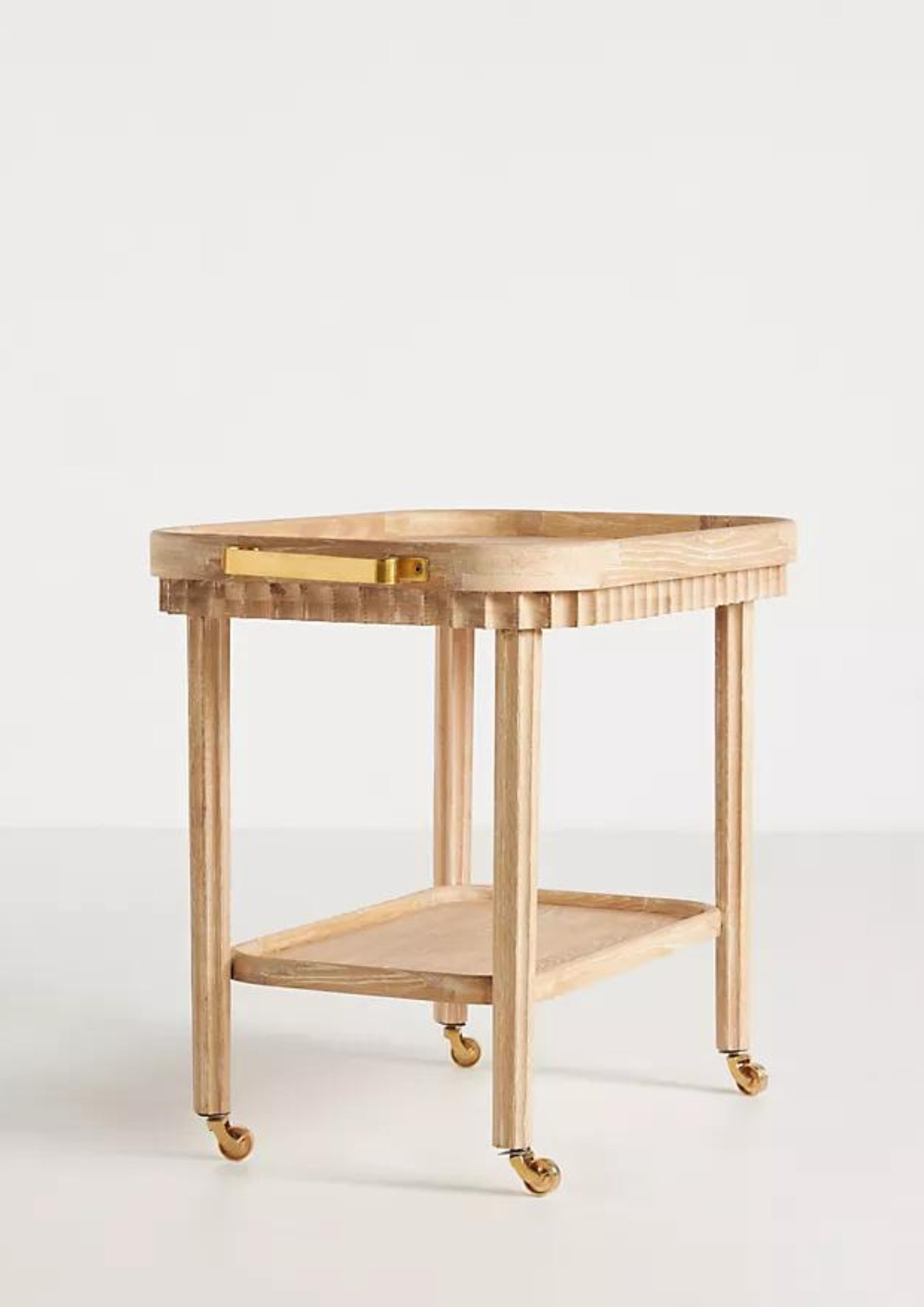 Introducing the Jasper Bar Cart, a fusion of sleek design and timeless elegance, the Jasper Bar Cart adds a touch of sophistication to any space. Featuring a grooved trim lining the edges, this classic bar cart exudes understated luxury and charm.