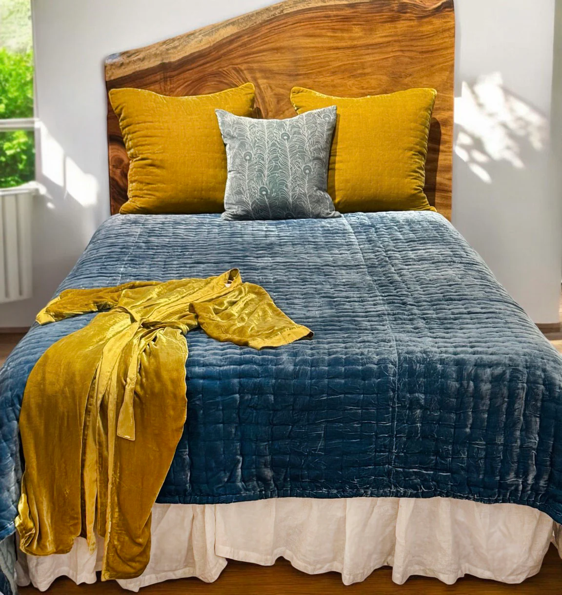 Peacock & Light Blue Reversible Mulberry Silk and Velvet Quilt | King & Super King Sizes